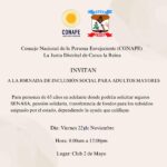 19 noviembre, 2024La Junta Distrital de Canca La Reina junto al Consejo Nacional de la Persona envejeciente (CONAPE) invita a todas las...