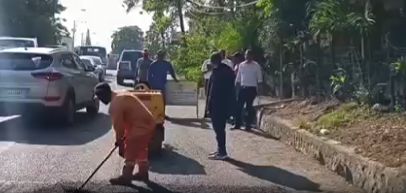 En el día de ayer junto al MOPC dimos inicio al bacheo del tramo de la carretera Duarte. Este abarcará desde donde inicia el Distrito y se extenderá hasta Estancia Nueva.