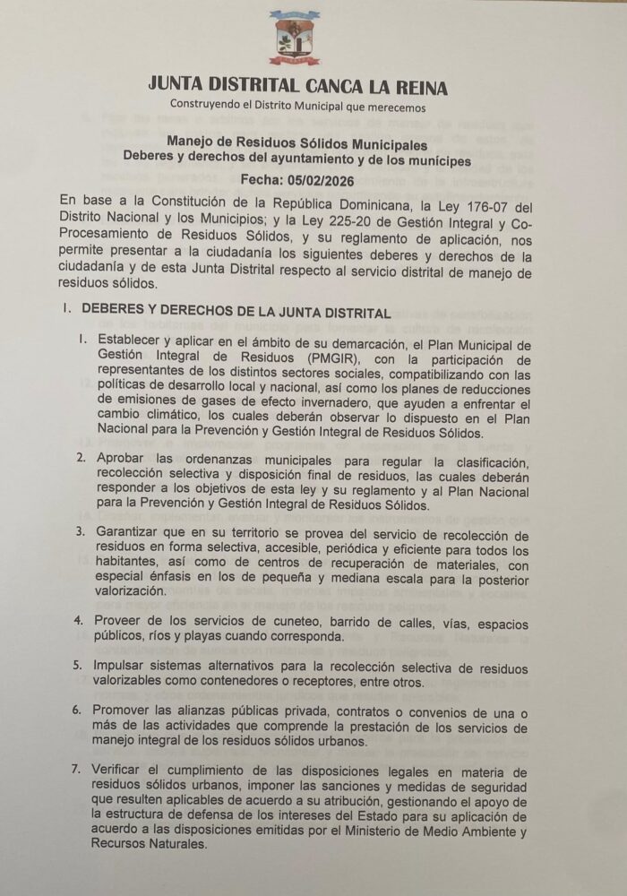 Deberes y derechos de los ciudadanos en nuestro Distrito Municipal.