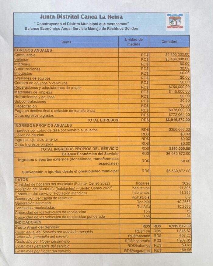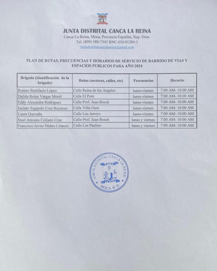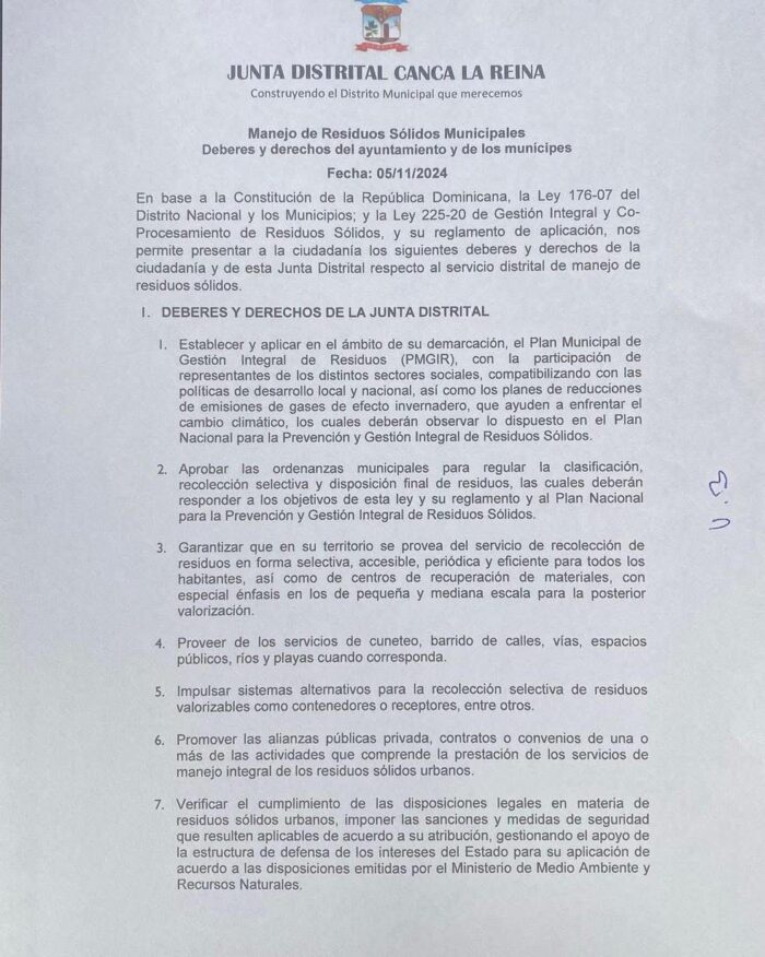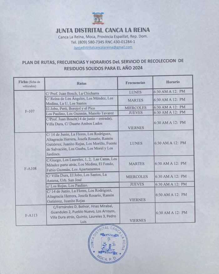 La Junta Distrital de Canca La Reina, en su misión de garantizar la transparencia y la participación activa de sus munícipes, comparte las siguientes informaciones importantes: