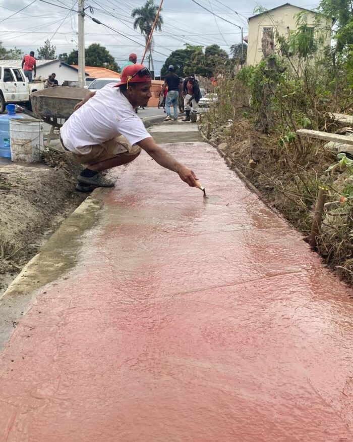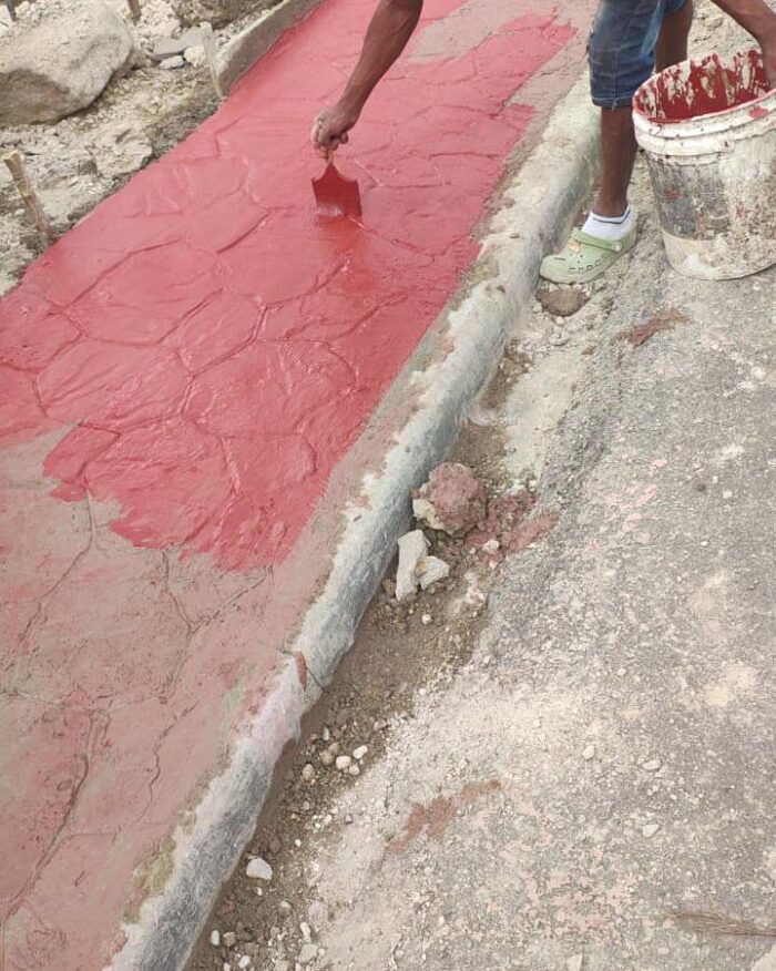 En la entrada estamos embelleciendo las aceras y adecuando los contenes para un mejor desagüe.