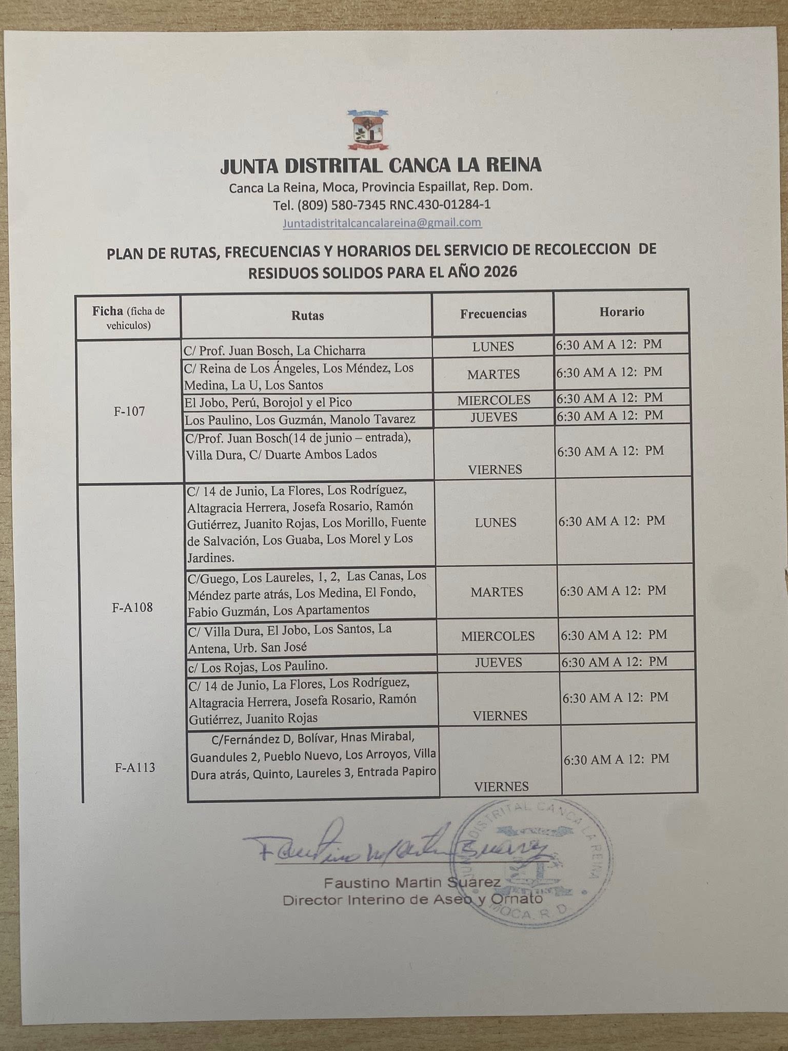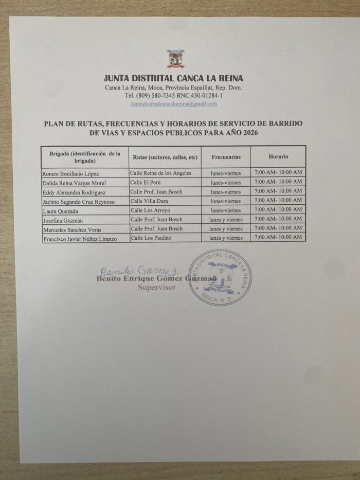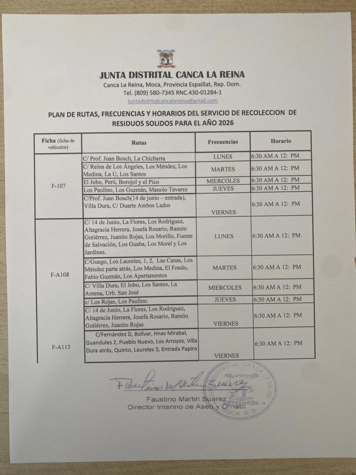 Rutas y frecuencia de recolección y barrido de calles en nuestro Distrito Municipal.