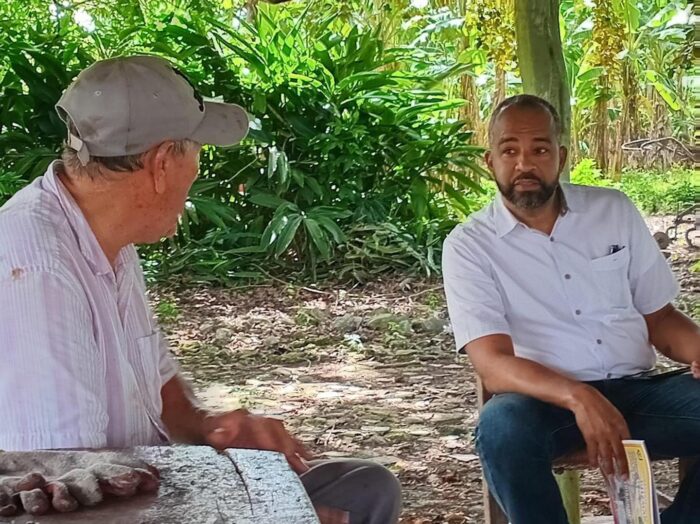 Durante el inicio de los trabajos de aceras y encaches en el sector La Chicharra, nuestro director distrital, Lic. Víctor Bretón, compartió un valioso intercambio de ideas con el munícipe Joel Reyes. Nos llena de orgullo saber que Joel y muchos más se sienten contentos con los cambios que ha traído esta gestión para su comunidad.