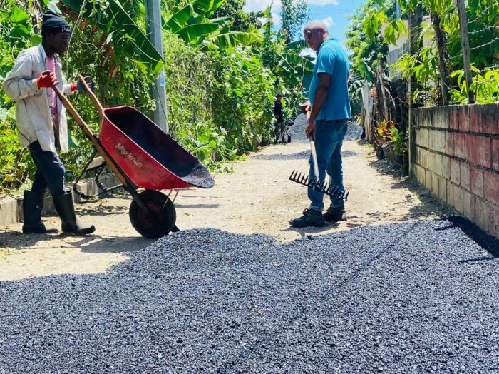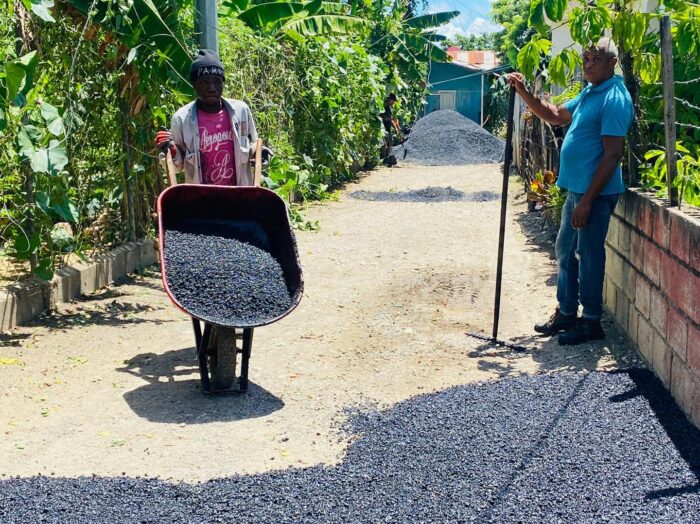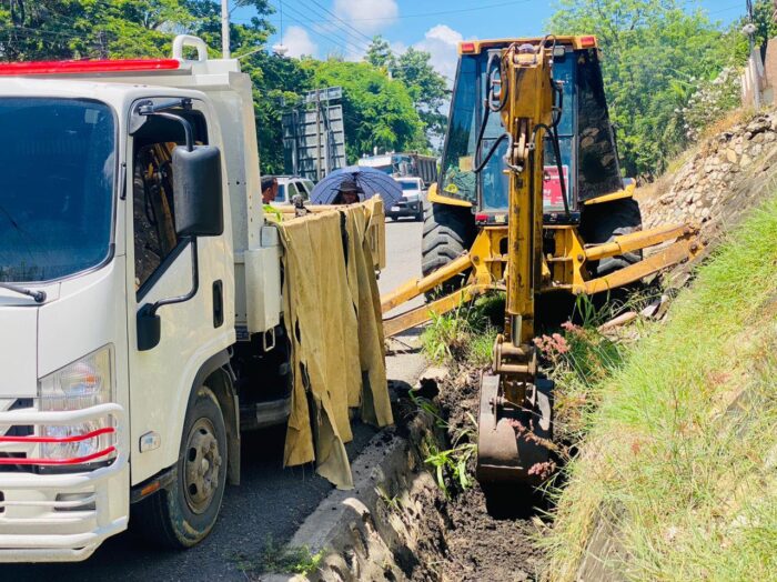 Además, seguimos con la construcción de aceras frente al Club de Villa Dura, por igual una brigada junto a una Retro limpiaban los encaches en la bajada del Km 5.